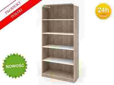 Hit sezonu - nowoczesny i stylowy regał w stylu skandynawskim. Korpus wykonany z płyty wiórowej o gr. 18 mm pokrytej wysokojakościowym laminatem w kolorze dąb sonoma, krawędzie półek wykonane z płyty MDF pokrytej białym akrylem na wysoki połysk, dającym efekt tafli lustra. Ponadczasowe połączenie kolorystyczne: klasyczne, naturalne, matowe drewno oraz nowoczesna, wysokopołyskowa biel idealnie oddaje surowy, naturalny i prosty styl skandynawski.