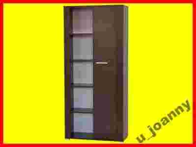 Regał wykonany w całości z płyty laminowanej o grubości 18 mm. Blaty oraz pionowe listwy frontowe wykończone okleiną PCV. Okleina ta charakteryzuje się wysoką wytrzymałością na uszkodzenia mechaniczne. Drzwiczki zamontowane na metalowych zawiasach. Uchwyt plastikowy w kolorze satynowym. Regał stoi na plastikowych satynowych stopkach o wysokości 2 cm. Regał na zdjęciach jest wykonany w kolorze venge. Kolory można dowolnie komponować z kolorów określonych u dołu aukcji.