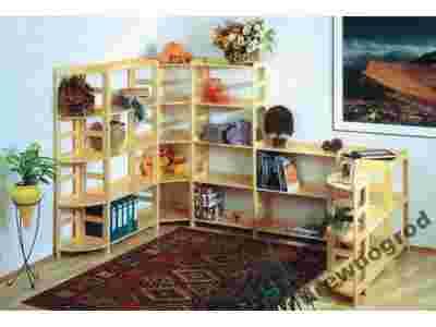 Regał wykonany jest litego surowego drewna sosnowego( płyta klejona sosnowa). Można go bejcowac lub malować na dowolny kolor, tak aby współgrał z wystrojem wnętrza w Panstwa domu. Drewno użyte do produkcji jest dokładnie szlifowane - przygotowane pod bejcowanie lub malowanie