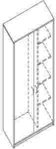 budowa regału: wieszak na ubrania, fronty płytowe, 4 półki