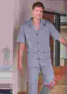 Śliczna bawełniana, klasyczna piżama męska. Piżama z krótkim rękawem, rozpinana na guziczki i z naszytymi kieszeniami. Spodnie długie proste. Bardzo wygodna.