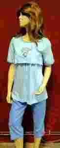 Przedmiotem aukcji jest piżama damska do karmienia i ciążę z firmy Regina. Śliczna piżamka z krótkim rękawem. Bardzo miła w dotyku bawełna i wygodny komfortowy krój. Bluzeczka z krótkim rękawem i aplikacją z przodu. Bluzeczka z rozcięciami pozwala na wygodne karmienie. Rozcięcia pozwala na swobodne karmienie małego głodomora :). Spodnie na nieuciskającej gumce w pasie z wyższym przodem na brzuszku.