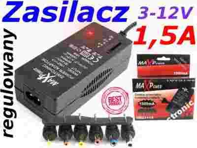 Zasilacz impulsowy MAXPOWER 1500 jest profesjonalnym zasilaczem prądu stałego, wykonanym z materiałów o wysokiej jakości. Maksymalny prąd tego modelu wynosi 1500mA. MAXPOWER 1500 ZI jest wyposażony w automatyczny przełącznik napięć wejściowych w zakresie 90 - 240 V o częstotliwości 50/60 Hz, i jest w stanie generować napięcie wyjściowe o następujących wartościach: 3.0, 4.5, 6.0, 7.5, 9.0 lub 12V. Dzięki regulacji napięcia, zasilacz ten nadaje się do większości urządzeń zasilanych prądem stałym o napięciu do 12V. Zasilacz posiada zabezpieczanie przeciw przepięciowe i przeciążeniowe.