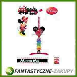 Mikrofon na regulowanym statywie, ze wzmacniaczem, kolorowymi światłami, możliwością podłączenia mikrofonu lub smartfonu. Melodyjki, aplauz, sterowana głośność. Zestaw będzie pierwszą próbą występów malucha z prawdziwym mikrofonem, rodzic przyda się jako publika. Element ozdobny Motyw MInnie Mouse.