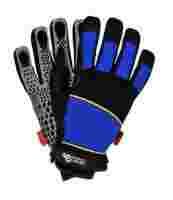 - dodatkowe wstawki z niebieskiego materiału na części wierzchniej rękawicy wraz z odblaskowymi paskami zwiększają widoczność