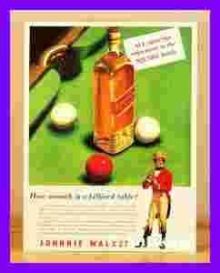 Przedstawiony na fotografiach plakat to reklama szkockiej whisky marki Johnnie Walker z motywem stołu bilardowego, słynną postacią Jasia Wędrowniczka i hasłem z żartobliwą grą słów.