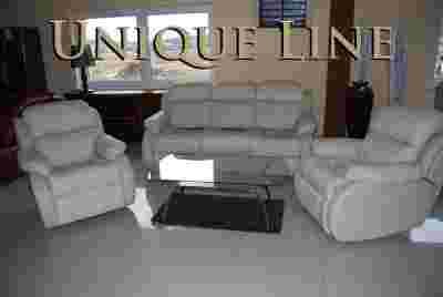 Komplet wykonywany jest na indywidualne zamówienie co sprawia, że klient decyduje o kolorze skóry. Elektroniczny wzornik kolorów wysyłamy mailem, po wybraniu określonych numerów, fizyczne próbki skór są wysyłane pocztą, aby mieć pewność że zamówiony mebel będzie w wybranym kolorze.