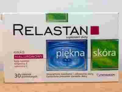 Kwas hialuronowy (HA) posiada właściwości wiązania wody i znacząco wpływa na utrzymanie prawidłowego poziomu nawilżenia w skórze i tkance łącznej. Łączy on również włókna kolagenowe w skórze właściwej, które odpowiadają za utrzymanie prawidłowej elastyczności skóry. Witaminy C i E wykazują silne właściwości antyoksydacyjne, neutralizują i usuwają wolne rodniki przyspieszające starzenie się organizmu. Beta-karoten opóźnia procesy starzenia się skóry i nadaje skórze atrakcyjny, ładny koloryt. Relastan dzięki unikalnemu połączeniu kwasu hialuronowego, witaminy C i E oraz beta-karotenu pomaga utrzymać jędrność skóry, jej gładkość i elastyczność.