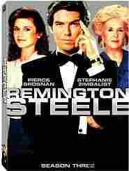 We still haven't learned the true name of the suave private detective who calls himself Remington Steele (Pierce Brosnan) as the series bearing the same name enters its third season. All we know for sure is that the real brains behind the Remington Steele Detective Agency is sexy private eye Laura Holt (Stephanie Zimbalist), who has hired "Steele" to pose as her nonexistent boss to attract clients who would otherwise be averse to hiring a woman to do their dirty work. We also know that former IRS agent Mildred Krebs (Doris Roberts) is still working as the agency's secretary in order to hassle Mr. Steele, whose questionable tax practices had cost Mildred her government job. As the season opens, it is clear that Laura has gotten over her initial dislike of Remington and is ready for romance -- but somehow or other, crime always rears its ugly head during those "special moments." This year's case load includes a mysterious person who, for unknown reasons, is trying to force Laura out of her apartment; a certain Maltese artifact that is hardly "the stuff that dreams are made of"; a comic strip artist whose creations come to murderous life; and Laura's efforts to probe the background of a politician. Mr. Steele, of course, still keeps his own background under wraps. Hal Erickson