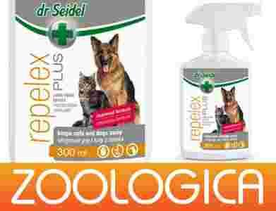 Repelex Plus - pomoc behawioralna, płyn o przedłużonym działaniu. Pomaga oduczyć zwierzę niepożądanych zachowań takich jak: załatwianie potrzeb fizjologicznych w miejscach do tego nieprzeznaczonych, niszczenie przedmiotów, drapanie, gryzienie. Zawarte w nim substancje zapachowe odbierane są przez zwierzęta jako bardzo nieprzyjemne. Dzięki temu spryskane powierzchnie i przedmioty przestają być obiektem zainteresowania zwierzęcia. Nieszkodliwy dla ludzi i zwierząt. Ma świeży cytrynowy zapach.