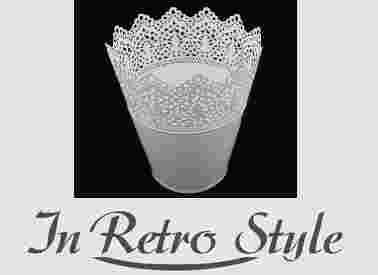 RETRO Doniczka osłonka metalowa biała koronka