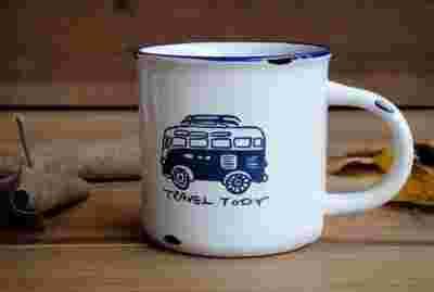 Retro kubek - jak emaliowany - podróż