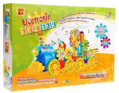 Zbudowana z klocków kolorowa lokomotyw, zasilana jest 3 bateriami typu AA (3 x 1,5V - brak w zestawie), jeździ, pufa oraz imituje dźwięki jadącego pociągu.