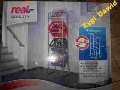 Dziś w aukcji Nowy metalowy regał składany na 4 skrzynki zobacz foto nr 1 Malowany proszkowo kolor siwy Zakupiony w Niemieckim sklepie REAL Wysokość regału 171 cm szerokość 50 cm głębokość 28 cm Skrzynki z napojami bądź produktami żywnościowymi wkładamy tak jak na foto W oryginalnym opakowaniu z instrukcją montażu Jak każdy używany sprzęt nosi ślady używania Proszę nie doszukuj się cech nowego sprzętu Jeśli twoim zdaniem w opisie zabrakło istotnych informacji na temat przedmiotu Zadaj pytanie sprzedającemu wyjaśnię wszystko co będę w stanie tak abyś nie napisał ze otrzymany przedmiot nie był zgodny z opisem.. Nie wycofuję się z aukcji zalicytujesz aukcja jest twoja Zobacz inne moje aukcje może znajdziesz coś ciekawego Do wysyłki aukcja będzie starannie zapakowana Koszt wysyłki 28 zł Wszelkie prawa zastrzeżone,zakaz kopiowania całości lub części opisu oraz zdjęć,w aukcji W przypadku niezastosowania się do zakazu zostaną wyciągnięte konsekwencje prawne. USTAWA O PRAWACH AUTORSKICH: Zgodnie z ustawą z 4 lutego 1994 o prawie autorskim i prawach pokrewnych (D.U. 1994/24/83) za naruszenie praw własności poprzez kopiowanie, powielanie i rozpowszechnianie przedstawionych wyżej treści bez zgody właściciela grozi grzywną oraz karą pozbawienia wolności od 6 m-cy do lat 5 (art. 115.1).