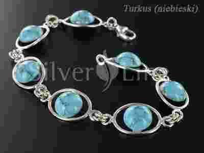 Delikatna bransoletka wykonana ze srebra próby 925 z okrągłymi kamieniami. Składa się z siedmiu elementów. Każdy z nich to kamień między owalem z druciku.