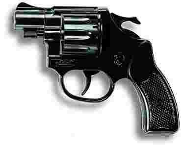 Rewolwer na kapiszony. Idealny do zabawy w policjantów i złodziei. W kolorze czarnym wielkości 11,5 cm. Kapiszonów nie ma w zestawie.