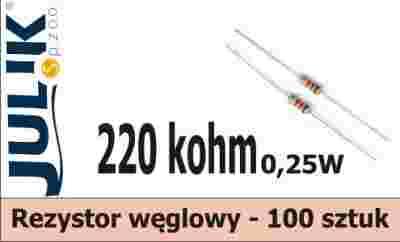 Rezystor 220K __ 220 kohm __ 0,25W__ 1/4W __100szt
