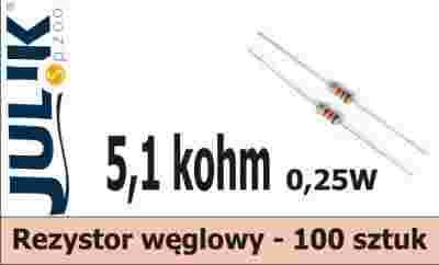 Rezystor 5K1 __ 5,1 kohm __ 0,25W__ 1/4W __ 100szt