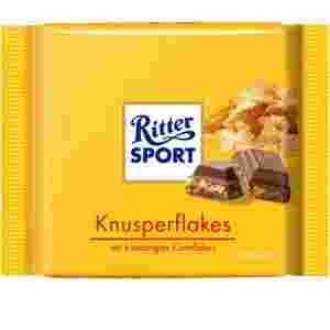 Mleczna czekolada z płatkami kukurydzianymi.Chrupiąca, pyszna, wysokiej jakości czekolada znanej i cenionej na całym świecie niemieckiej firmy Ritter Sport w oryginalnym kształcie kwadratu.
