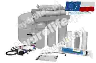 System oferowany jest w sprzedaży ze standardowym zestawem wkładów, membraną osmotyczną, przyłączami wodnymi, wylewką, kluczem oraz zbiornikiem do magazynowania wody czystej.