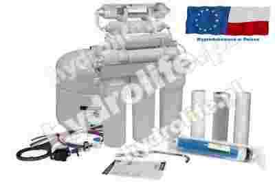 System oferowany jest w sprzedaży ze standardowym zestawem wkładów, membraną osmotyczną, przyłączami wodnymi, wylewką, kluczem oraz zbiornikiem do magazynowania wody czystej.