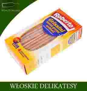 Roberto Grissini Senza Grassi Animali to delikatne włoskie paluszki bez tłuszczu zwierzęcego, jedna z ulubionych przekąsek w słonecznej Italii. Te chrupiące przysmaki można łączyć np. z szynką parmeńską czy też speckiem.