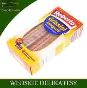 Roberto Grissini integrali to delikatne włoskie paluszki pełnoziarniste, jedna z ulubionych przekąsek w słonecznej Italii. Te chrupiące pełnoziarniste przysmaki można łączyć np. z szynką parmeńską czy też speckiem.