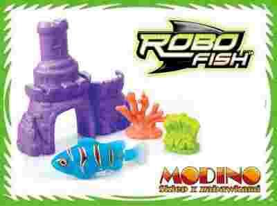 2 koralowce + zamek w zestawie z rybką jako dodatkowe akcesoria do akwarium. Seria liczy 8 rybek w 2 gatunkach i 6 kolorach. Małe robociki- rybki, które zachowują się jak żywe po zetknięciu z wodą, dzięki specjalnym sensorom.