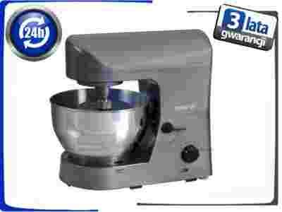 Profesjonalny robot kuchenny o bardzo dużej mocy 1200W, wyposażony w 3 rodzaje stalowych mieszadeł do ugniatania, ubijania, mieszania, stalową misę o pojemności aż 5 litrów oraz 6-stopniową regulację obrotów.