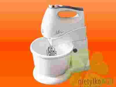 nowoczesny robot kuchenny z miską obrotową, wymiennymi końcówkami ubijającymi i mieszającymi. Mikser może pracować z miską obrotową lub bez miski jako mikser ręczny.