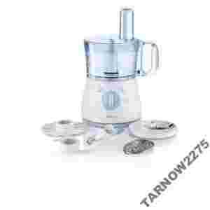 • Wielofunkcyjność - robot kuchenny może wykonać 16 różnych zadań dzięki dołączonym do zestawu 5 akcesoriom: nóż ze stali nierdzewnej do siekania, ubijania, ucierania na jednolitą masę, kruszenia, krojenia, dodawania składników, tłuczenia, mielenia mięsa, miksowania, wyrabiania (gęstego) ciasta; wkładka do krojenia warzyw i owoców średniej grubości; wkładka do szatkowania warzyw, owoców i sera średniej grubości; tarcza emulgacyjna do ubijania i emulgacji.