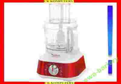 sokowirówka, wyciskarka do cytusów, nóż ze stali nierdzewnej, dwustronne metalowe tarcze, tarcza do ziemniaków, trzepaczka do ubijania, nóż do ugniatania ciasta, książka z przepisami |