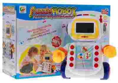 Dodatkowe przyciski umieszczone na głowie robota urozmaicą zabawę, mamy do dyspozycji przycisk uruchamiający quiz, przycisk uruchamiający melodyjki oraz przycisk testowy.