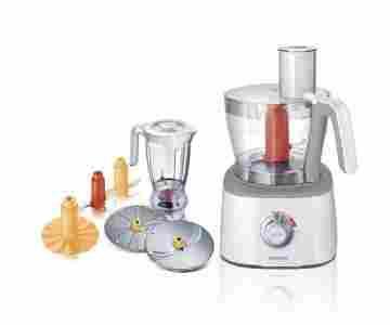 Wszystkie akcesoria można myć w zmywarce. Są to: końcówka do wyrabiania płynnego i gęstego ciasta, nóż ze stali szlachetnej do siekania mięsa i warzyw, dwie metalowe tarcze do szatkowania