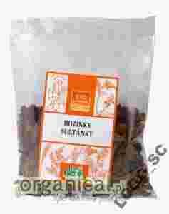 Ekologiczne rodzynki sułtanki, suszone w naturalny sposób, niesiarkowane. Rodzynki sułtanki najlepiej komponują się jako dodatek do ciast, deserów oraz sałatek. Stanowią również pożywną, samodzielną przekąskę. Skład: suszone rodzynki sułtanki*, olej roślinny* (*składniki ekologiczne).