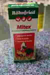 Mitex można stosować bezpośrednio na siodełka i sprzęty znajdujące się w gołębniku oraz na wszystkie powierzchnie gołębnika. 100 ml produktu Mitex należy zmieszać z 2 litrami wody (w przypadku silnego ataku pasożytów, np. ptaszyńca kurzego, roztwór powinien się składać w jednej części z Mitex’u i jednej części wody i należy go stosować codziennie przez tydzień). Taką mieszanką należy potraktować cały gołębnik.