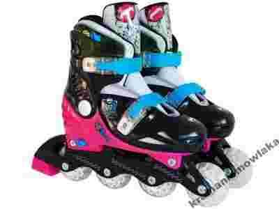 Rolki posiadają: - półmiękki but, - system cyrkulacji powietrza zwiększający komfort jazdy, - regulację rozmiaru buta od 30 do 33, - usztywniający, miękki i gruby język, - kółka o twardości 82 A, średnicy 64 mm, grubości 24 mm, - hamulec na prawej rolce, - dwu sekcyjne klamry zapadkowe umożliwiające bardzo płynną regulację zapięć, - wysokiej jakości plastikowe płozy, - oryginalną kolorystykę utrzymaną w tematyce MONSTER HIGH.>br>