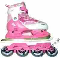 Oferowany model jest w dziewczęcym, różowo-kwiatowym motywie. Specjalnie skonstruowana podeszwa pozwala na swobodne manewrowanie przeznaczeniem tego modelu - łyżwy lub rolki. Regulowanie rozmiaru buta zapewnia iż ta hybryda starczy na dłuższy czas. W zestawie klucze do wymiany płozy!