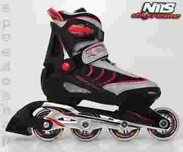 Regulowane rolki NILS EXTREME na miękkich, kauczukowych kółkach PUC 76 x 24 mm. Rolki posiadają wysokiej klasy łożyska ABEC 5 - jedne z najszybszych i najtrwalszych na rynku. Płozy wykonane z aluminium.
