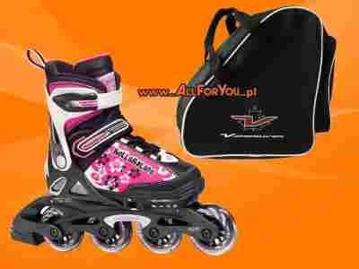 - Torba jest odpowiednio wyprofilowana pod kształ rolek - łyżew - wrotek.