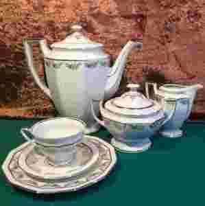 w czasach okupacji amerykańskiej. Serwis jest sześcioosobowy - kompletny. Porcelana jest w kolorze białym. Porcelana zachowana jest w dobrym stanie, jak na zdjęciach.