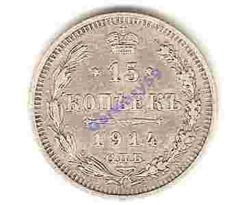 Rosja 15 kopiejek 1914 srebro