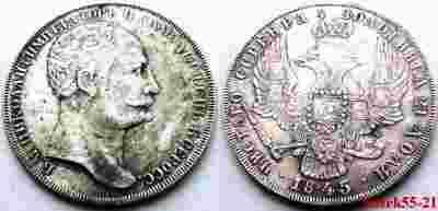 ROSJA 1 RUBEL 4 ZLOTNIKA 21 DOLJA 1845 MIKOŁAJ I