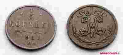 ROSJA CARSKA 1/2 KOPIEJKI 1911 SPB MIKOŁAJ II