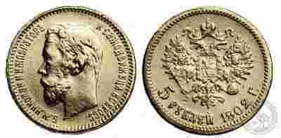 Rosja - Mikołaj II - 5 Rubli 1902 - złoto