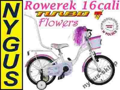 ROWER 16 cali FLOWERS BIAŁY PROWADNIK ROWEREK POL