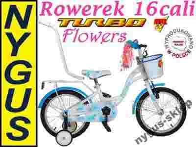 ROWER 16 cali FLOWERS BIAŁY PROWADNIK ROWEREK POL