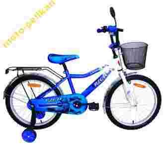 Stan: Nowy Rozmiar koła w calach: 20" Wiek dziecka: 4 lata + Kolor: Niebieski, Wyposażenie: Bagażnik, Kółka boczne, Koszyk, Lusterko, Błotniki, Osłona łańcucha, Dzwonek, Hamulec: Przód, Tył,