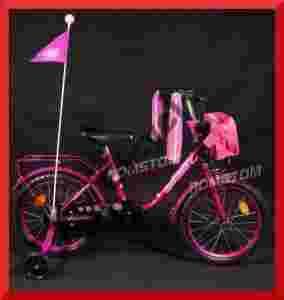 piankowe ochraniacze, lakierowane błotniki, pełna osłonka łańcucha, bagażnik, kółeczka podporowe, wstążeczki |