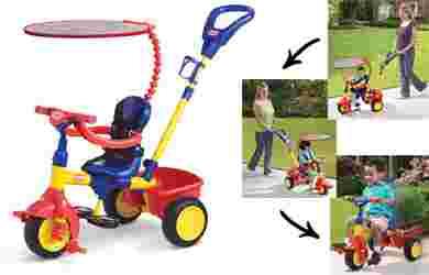 Z tylu pojemnik na zabawki oraz uchwyt do sterowania przez rodziców.